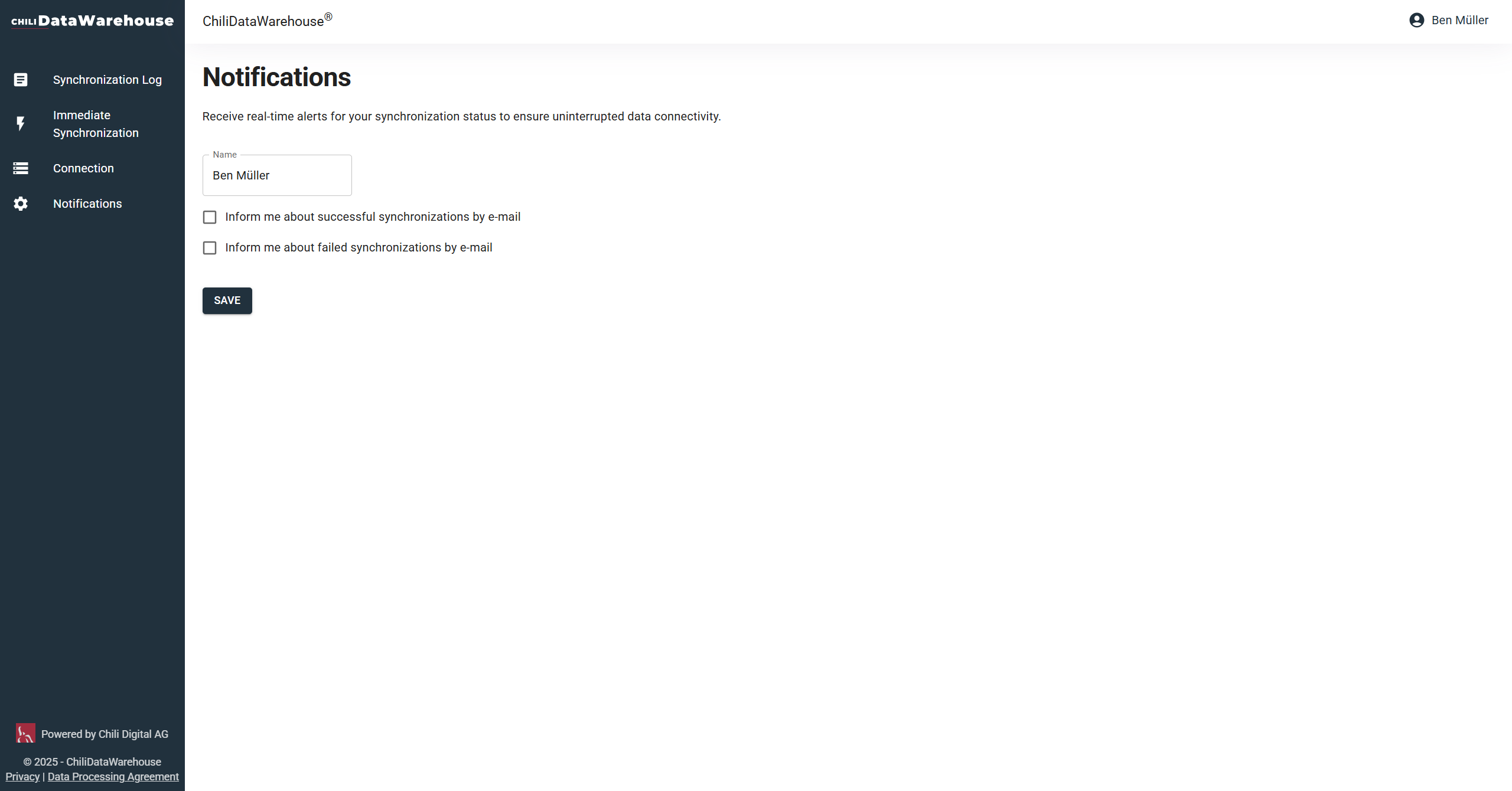 Ermöglicht den Erhalt von täglichen Benachrichtigungen über den Synchronisationsstatus. So stellen Sie sicher, dass Sie stets über den aktuellen Status informiert sind und schnell auf Probleme reagieren können.